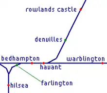 Farlington Halt railway station was a disused station between Bedhampton and Hilsea , located immediately to the west of Farlington Junction on the Portsmouth Direct Line railway.[1]