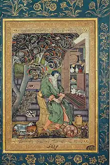 Beg had produced miniature paintings under the patronage of five known rulers in West Asia and South Asia: Ibrahim Mirza of Safavid Mashhad, Mirza Muhammad Hakim of Kabul, Akbar in Mughal India and later his son Jahangir, and Ibrahim Adil Shah II of the Sultanate of Bijapur.[4] His distinct style came to be revered by his contemporaries and patrons, due to a distinct homogeneity, evolving as a result of his Persian training and experiences in cosmopolitan Mughal courts.[5]