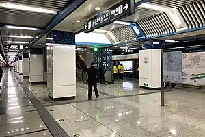 The station's platforms were completed on 28 December 2014, along with the rest of the initial section of Line 7, but, due to the need to clear space at the surface for station entrances, the station has remained unopened and trains pass through without stopping at Fatou.[3] In November 2017, the Beijing Municipal Commission of Housing and Urban Rural Development, and the Beijing Daily, both stated they expected the station to be operational by the end of 2018.[4][5] It was opened on December 30, 2018.[6]