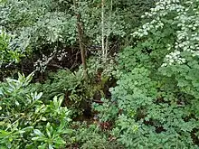 Fauntleroy Creek is a stream in the Fauntleroy neighborhood of West Seattle, Washington, United States. It flows for about a mile from its headwaters in the 32-acre (129,000 m²) ravine of Fauntleroy Park to its outlet just south of the state ferry terminal on Puget Sound's Fauntleroy Cove, dropping 300 feet (100 m) vertically along the way. It currently supports cutthroat trout and coho salmon.