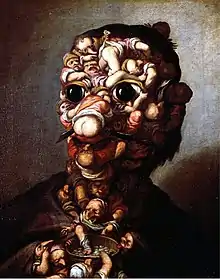 Bocchi's paintings were generally seen as humorous or satirical, and often scabrous pieces, though some resemble the decorative conceits of Arcimboldo, while others suggest the nightmarish world of Hieronymus Bosch. Cristiani cites this as the "capricious particularity to represent with his master paint-brush: the battles, the fights, the games, the dances, the feasts, and triumphs of the pygmies".[1] By some Bocchi is described as a genre painter of the Bamboccianti, specifically a Bambocciate di nani or arte pigmeo. His paintings were highly prized by Bergamesque collectors such as Giacomo Carrara and Ludovico Ferronati.