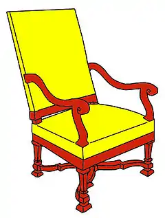 A fauteuil (French: [fotœj]) is a style of open-armchair with a primarily exposed wooden frame originating in France during the early 17th century. A fauteuil is made of wood and frequently with carved relief ornament. It is typically upholstered on the seat, the seat back and on the arms (manchettes). Some fauteuils have a valenced front seat rail which is padding that extends slightly over the apron. The exposed wooden elements are often gilded or otherwise painted.