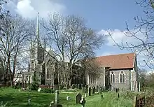 St Mary of Charity, Faversham Parish Church is the Church of England parish church of the town of Faversham in Kent, England.[1][2][3][4][5][6][7] The church spire dominates the town's skyline and is visible from some distance.