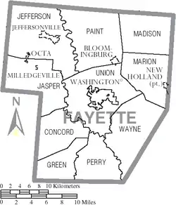 Fayette County was formed on March 1, 1810, from portions of Highland and Ross Counties. It was named after Marie-Joseph Motier, Marquis de La Fayette, a French general and politician who took the side of the Colonials during the American Revolutionary War and who played an important role in the French Revolution.[5]