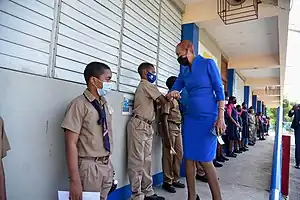 Williams became the minister in the ministry during the COVID-19 pandemic. During much of 2020, schools across Jamaica had been closed and teaching and learning were being conducted online. However, Williams led a pilot programme which involved 17 public schools resuming face-to-face teaching and learning.[16] On 12 April 2022, Williams reported to parliament that the government had spent $1.8 billion to militate against learning loss across the education sector resulting from the COVID-19 pandemic.[17] She reported in May 2022 that daily school attendance was almost back to the pre-pandemic level of 75 per cent. The minister however conceded that the figure was still below world standards.[18]