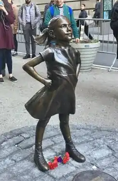- ↑ "Fearless Girl promotes female leaders". BBC News. March 6, 2019.