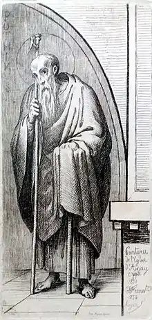 Etching depicting Saint Pothin, based on frescoes by Jean-Baptiste Frénet, 1854, Musées Gadagne.