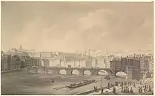 The Pont du Change before 1840, a boat about to pass under the marvelous arch (E. C. Martin-Daussigny, 1846).