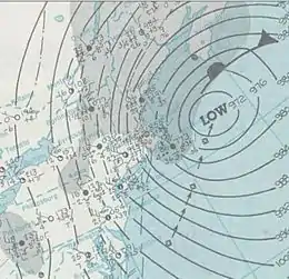![]() A surface weather analysis of the nor'easter | |