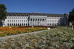 The grounds around the Electoral Palace has an area of 8.6 hectares. It is the largest palace complex in the Middle Rhine area and its garden is integrated into the city. There is a restaurant in the castle. The garden behind the palace was restored to the historical Lenné scheme. The entire complex had been made up of diverse species of plants, water features, fountains, radial steps and walls for sitting on. It reflects the glory of the rulers who once resided here.