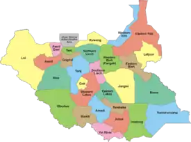 In October 2015, South Sudan's President Salva Kiir issued a decree establishing 28 states, again largely along ethnic lines, to replace the former 10 states.[31] The measure was approved in parliament in November,[32] although in February 2020 the number of states in South Sudan returned to 10.[33]