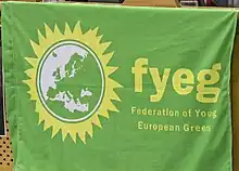 The Federation of Young European Greens, often referred to as FYEG (/ˈfiːɛɡ/ FEE-egg), is an umbrella organisation that gathers young green movements and organisations across Europe with 40,000 members.[1] FYEG's aim is to defend climate and social justice on the European level. Since 2007, FYEG is the European Green Party's youth wing.