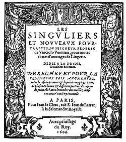 • Vinciolo, Federico: Renaissance Patterns for Lace, Embroidery and Needlepoint, Dover Books, 1971. ISBN 0-486-22438-4