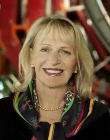 Felicitas Pauss is an Austrian physicist. She obtained her PhD, Berechnung von Neutron-Proton Polarisationsobservablen ("Calculation of neutron/proton polarization observables"), from University of Graz, Austria, in 1976.[1] Pauss has published almost 1500 scientific papers and has given over 450 talks.[2][3] From 2009 to 2013 she was in charge of International Relations at CERN.[4][5] Prior to becoming a professor at Swiss Federal Institute of Technology at Zurich in 1993, while at Cornell and CERN, she was member of UA1 and L3 collaborations.[6] In 1994, she joined the CMS collaboration and contributed to its design, construction, and management.[7][8]