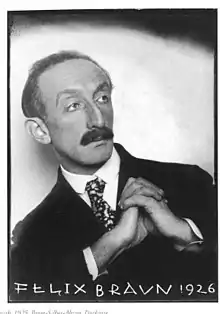 Felix Braun (4 November 1885, Vienna – 29 November 1973, Klosterneuburg, Lower Austria) was an Austrian writer.