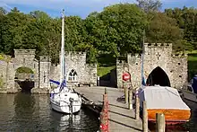 Astley's son and heir, Francis Dukinfield Palmer Astley, made the estate his primary residence until 1859, when he sold it to Colonel G. J. M. Ridehalgh—a director of the North Lonsdale Iron and Steel Company, colonel of the 2nd Westmorland Volunteer Battalion Border Regiment, and one of the founder members of the Royal Windermere Yacht Club.[3] Ridehalgh continued the improvements made by the Astleys, planting an arboretum and replacing the modest lakeside facilities with a "small harbour" consisting of three new piers and five new faux-medieval boathouses.[1]