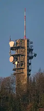 The Felsenegg Tower is a broadcasting tower located nearby Felseneggbahn mountain station on the Felsenegg vantage point in the canton of Zürich in Switzerland. The tower is owned by Swisscom Broadcast AG and generally not accessible by the public.