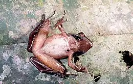 - 1 2 Krishnamurthy, S.V.; Katre, Shakuntala; Reddy, S. Ravichandra (1992). "Structure of femoral gland and habitat features of an endemic anuran, Nyctibatrachus major (Boulenger)". Journal of the Indian Institute of Science. 72: 385–393.