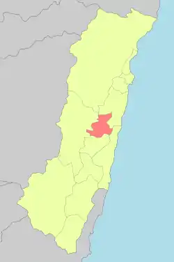 The administration area here is 120.518 km2, and located in the Huatung Valley plain between Central Mountain Range and Hai'an Range (Coastal Range).