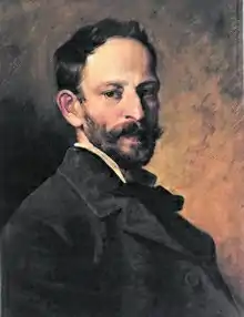 Ferdinand Peter von Quiquerez was born in Budapest in 1845.[3] His father Ferdinand von Quiquerez was an Austrian military doctor of French origin, while his mother Maria was from a German-speaking family in Slovenia.[4] After completing his education in Zagreb, he spent a year in the Austrian military school before returning to Zagreb for university. He originally intended to pursue a career in law, but began to study painting with József Ferenc Mücke (1819-1883), who soon redirected his interests. In 1870, a scholarship enabled him to attend the Academy of Fine Arts, Munich where he studied under Johann Leonhard Raab and Karl von Piloty.[5] While in Munich, he met fellow Croatian painter Izidor Kršnjavi, who encouraged him to continue studying ancient art rather than go to Paris, as Quiquerez wanted to do.[5] Poor health, however, led him to transfer to the Accademia di Belle Arti di Venezia where he continued his studies with Pompeo Marino Molmenti.[6] His patriotic inclinations led him to specialize in historical and folkloric works.[6] He found himself unhappy in Venice, and soon embarked on traveling through Italy with Kršnjavi, staying in places such as Florence, Rome, Naples, and Pompeii.[7][8]