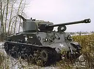 The museum's collection contains over 70 vehicles, including jeeps, carry-alls, carriers, tanks and a motorcycle. Aside from fully restored Bren Gun Carrier and M24 Chaffee, a pair of M4A2(76)W HVSS, and one unrestored Centurion, there are also a number of foreign-operated vehicles including a Scania HLVW prototype.[2]