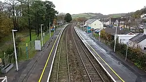 Ferryside railway station serves the seaside village of Ferryside, Carmarthenshire, Wales. The station was opened by the South Wales Railway on 11 October 1852 and is now an unmanned stop. It is 238 miles 51 chains (384.0 km) from the zero point at London Paddington, measured via Stroud.[1]