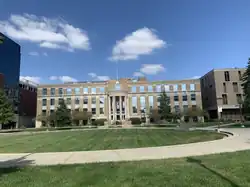 In 1938, the Indiana State Board of Health moved into a newly constructed building, sometimes referred to as the Laboratory Science Building, designed by Joe H. Wildermuth & Co. Architects. The construction was funded as a Public Works Administration (PWA) project and approved by Governor M. Clifford Townsend due to the lobbying efforts of Thurman B. Rice to create a better healthcare system for Indiana.[1] The State Board of Health would occupy this building from 1939 to 1949 and name it Hurty Hall.[1]
