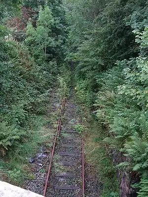Between 2000 and 2011 there were at least two attempts to put the remaining line to use, although by 2011 the whole station site had been completely demolished. In 2011 there were proposals to use the rails as a recreational velorail track. Neither this nor the earlier idea came to anything.[89] The possibility remains that the surviving line could see future preservation or reuse by the nuclear industry.[90] In Spring 2016 the mothballed line still ran through the site to the former nuclear flask loading point.