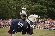 A jousting reenactment at Kelmarsh in 2013