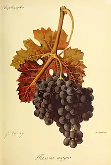 Fetească Neagră (Romanian pronunciation: [feˈte̯askə ˈne̯aɡrə]); English: Black Maiden) is an old pre-phylloxeric variety of Romanian - Moldovan grape,[1] cultivated mainly in several areas in the Romanian regions of Moldavia, Muntenia, Oltenia, Banat, Northern Dobruja[2] and also in the Republic of Moldova.