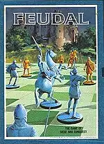 Feudal is a chess-like board wargame for 2–6 players on two or four opposing sides. It was originally published by 3M Company in 1967 as part of its bookshelf game series, and was republished by Avalon Hill after they purchased 3M's game division. The object of the game is to either occupy one's opponent's castle or to capture all of one's opponent's royalty. There are six sets of plastic pieces in three shades each of blue and brown. Each set consists of thirteen mobile figures with differing methods of movement and attack, and a stationary castle piece. The play area consists of four plastic peg boards depicting empty, rough, and mountainous terrain.