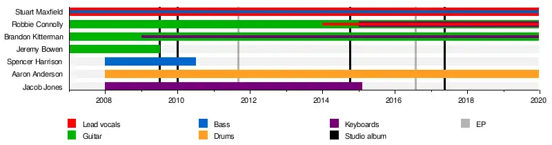 - Stuart Maxfield – lead vocals, bass (2007–present)[1]