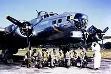 Fifinella put in appearances on WASP flight jackets and in many variations on the noses of bombers. One B-17G Flying Fortress, Fifinella (Serial #42-107030) of the 91st Bomb Group, was named after her. Fifinella was lost on August 13, 1944, on a bombing raid at Le Manoir, France. During the Korean War there was also a B-29 Superfortress (Serial #42-6569) of the 19th Bomb Group named Fifinella.[8][9]