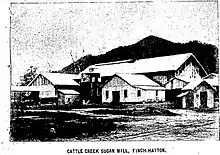 The Cattle Creek Sugar Mill commenced in 1906, closing in 1990.[7] It was located on the south side of Anzac Parade between the railway station and the school (21°08′27″S 148°38′04″E / 21.1407°S 148.6344°E).