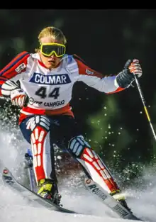 He was the son of alpine skier Liv Jagge-Christiansen and tennis player Finn Dag Jagge.[3] In the World Cup he won seven slalom victories.[4] He also won the Norwegian Championship eight times.[5] His career highlight came with the gold medal in the slalom competition at the 1992 Olympics in Albertville.[6] He retired in 2000.[7] He trained the Norwegian women ski team from 2005 to 2007.[8] He worked for the Norwegian telecom company Ludo[9] and later as a Partner Headhunter for Dynamic People Headhunting in Oslo.[10][11] Jagge won the Norwegian reality TV show Mesternes Mester in 2011.[12] He was 54 years old, when he died after a short illness in July 2020. He was married to Trine-Lise Jagge and had two children.[13]