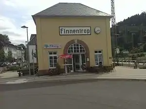 Finnentrop station is a railway junction on the Ruhr–Sieg railway between Hagen and Siegen in the German state of North Rhine-Westphalia. The station is located on the territory of the municipality of Finnentrop in the district of Olpe. The Bigge Valley Railway to Olpe branches off here and it was also the start of the Finnentrop–Wennemen railway, which was closed in 1996. It is classified by Deutsche Bahn as a category 4 station.[1]