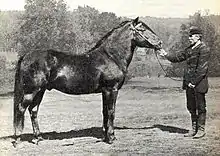 Some estates, especially in southern regions of Finland, were known to have used stallions of several light and hot-blooded breeds; for example, an officer in Pernå bred Arabians.[64][79] These crossbreeds were probably an attempt to create showy driving horses.[64] A notable failing of a crossbreeding attempt happened in 1875, when a stud was founded in Porvoo to import and export Norfolk Trotters, a breed that has had important influence in several driving horse breeds, including the Standardbred.[95] The crossbred offspring were praised for their looks, but turned out to have poor temperaments and no talent for speed.[95] Due to a combination of the large population of horses in Finland (over 200,000 animals) and the later enthusiasm for purebreeding, these estate-based crossbreeding attempts never had significant influence on the modern Finnish horse.[95]