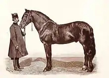 Russian Orlov trotters and Don horses also influenced the Finnhorse population in the first half the 19th century, improving its size, ridability and refinement.[64][79] The horse type originating in Northern Savonia known as the "Fürstenbergian breed," bred by the engineer Fürstenberg at the beginning of the 19th century, was a crossbreed between the Finnish horses and Orlov trotters.[64][79] The influence of Don horses was seen as late as in the 1920s and 1930s among the black and bay horses used by the Finnish cavalry – the dragoons of Nyland had two full squadrons of these colours.[64]