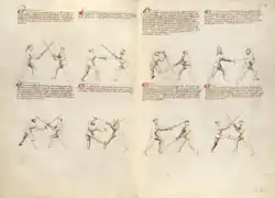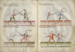 - ↑ after the early-14th-century RA Ms. I.33 and the late-14th-century GNM Ms. 3227a, and roughly contemporary with the French Le jeu de la hache; comparable texts from the Asian traditions of swordsmanshipt do not appear prior to the 16th century, e.g. Jixiao Xinshu, Muyejebo.