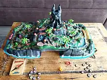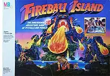 Fireball Island is a board game first published by Milton Bradley in 1986. The tagline is "The dimensional adventure game of pitfalls and perils!" It is set on an unexploited (by treasure hunters) tropical island, the home of the ancient idol Vul-Kar. Players progress along winding paths around the island, avoiding fireballs and trying to steal Vul-Kar's jewel and carry it to the escape boat. The game concept was originally developed by artist / toy designers Bruce Lund and Chuck Kennedy. The game was licensed to Milton Bradley by Anjar Co., an international toy licensing company and co-licensor of the game.