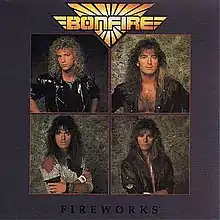 Fireworks is the second album by the German hard rock band Bonfire. It was released in 1987 on the label BMG International with two different covers, the worldwide one had a patterned similar to a decorated vault door while the North American version was simply four pictures of each band member in each corner of the cover. This album was recorded with a guest drummer, Ken Mary from Fifth Angel, because the band's drummer was fired during the writing sessions. A new drummer was hired just before the band toured in support of Fireworks. In 2003, the album was certified a Gold seller. Originally the band had recorded 25 songs, settling on 11 tracks.