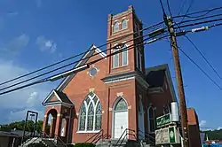 First Baptist Church is a historic African-American Baptist church complex located at Covington, Virginia. The property includes two churches. One of the churches was built about 1890, and is a Gothic Revival style frame church. After construction of the 1911 church, it served as a classroom annex and cafeteria for a nearby school. The 1911 church is a Gothic Revival / Colonial Revival brick church. It features a corner belfry tower, lancet arched stained-glass windows, and a modernistic 1955 education wing.[3]