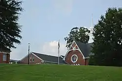 First Baptist Church, previously known as Leaksville Baptist Church, is a historic Baptist church located at 538 Greenwood Street in Eden, Rockingham County, North Carolina. It was built in 1886, and is a Gothic Revival style brick church. It has a hipped roof with intersecting gables and Stick Style decoration in the gable ends. It features lancet windows and a wooden Gothic belfry with pointed steeple centered on the roof. Two Colonial Revival style additions were made to the church in 1934 and 1937.[2]