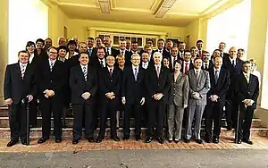 ![]() Governor-General Michael Jeffery with first arrangement of newly appointed ministers to the Rudd ministry | |