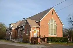The First United Methodist Church is a historic church east of the junction of 2nd Street and 5th Avenue in Lockesburg, Arkansas. It is a T-shaped structure, with a single-story nave and an asymmetrical 2+12-story cross section at the rear of the building. It is framed in wood and clad in brick. Built in 1926, it is the fourth church building to serve a congregation formally established in 1872, and is a particularly well-preserved example of a Gothic Revival structure with Classical and Medieval Revival elements. This distinctive combination of elements is rare in Arkansas church architecture.[2]