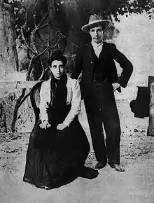 Finally, the neighbours could not remain indifferent as before, with what was at the moment known as "a marriage without a man".[4] The couple were exposed by Galician and Madrid newspapers and, as a consequence of this, both quickly lost their jobs, were excommunicated, and were issued an arrest warrant.[4] It appears that, so that the excommunication could take place, the parish priest requested a doctor examine Mario to check if he was a man or a woman.[5] Mario agreed. When the doctor issued his verdict, Mario attempted to pass for a hermaphrodite whose condition had been diagnosed in London.[5] The Civil Guard pursued the couple to the town of Dumbrías, where they both worked as teachers. There is evidence that they passed for Vigo and Oporto in their escape.[4] The last that is known of them is that they managed to board a ship destined for South America (possibly Argentina, as so many other Spaniards of the era),[4] where they spent their honeymoon and, finally, stayed to live.[6] One of the cases that one of the courts took against them was closed. Several years later, some residents of Dumbría spread a rumour about the death of Elisa and the subsequent marriage of Marcela to a man.[7] This rumour has not been confirmed.