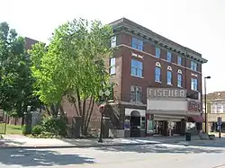 The Fischer Theatre was built in 1884 in Danville, Illinois, then known as the Grand Opera House.[1] The grand opening was held on November 5, 1884. The lot on which it was built cost $6000, and the building itself cost $28,000 including furnishings.[2] In 1912, the theatre was remodeled and upon its reopening on March 13, 1913, it was known as the Fischer Theater, after a member of its governing board. In 1929, the theater added equipment to project movies, and the exterior was remodeled when apartments and commercial space were added to the front of the building.[2] A large pipe organ was used to accompany silent movies.[3] In 1971, the theater was sold to the Kerasotes Theatres chain. The original seating capacity was about 900, which included the main floor, mezzanine, balcony and boxes. New seating was installed in 1971 when it became a Kerasotes theatre, giving the main floor a capacity of 600.[4]