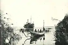 The SS Kavirondo and a canoe at Port Victoria during the 1927 fisheries survey of Lake Victoria