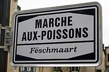 Fishmarket (Luxembourgish: Fëschmaart, French: Marché-aux-Poissons, German: Fischmarkt), also spelt Fish Market, is a street in Luxembourg City, in southern Luxembourg, that shares its name with the neighbourhood directly surrounding it. It lies in the eastern part of the Ville Haute quarter.