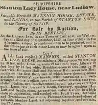 Sale advertisement for Fishmore Hall in 1840 (Fishmore Hall was called Stanton Lacy House at that time.